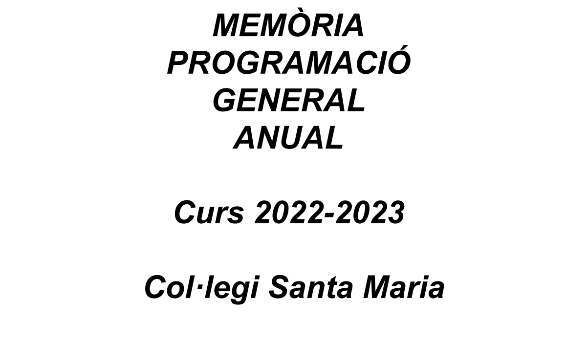 La Programación General del Centro y la Memoria Anual son unos documentos que se tienen que elaborar anualmente y que, por un lado concretan, año por año, el funcionamiento de todas las actividades que se realizan en el centro, y por el otro hacen una evaluación. Así pues, son dos documentos estrechamente relacionados.