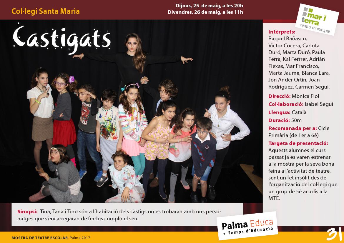 Uns alumnes de 6è de primària representaran la seva obra: Castigats. Ho faran al Teatre Mar i Terra el dijous, 25 de maig, a les 20h per a tots els que hi vulguin assistir.